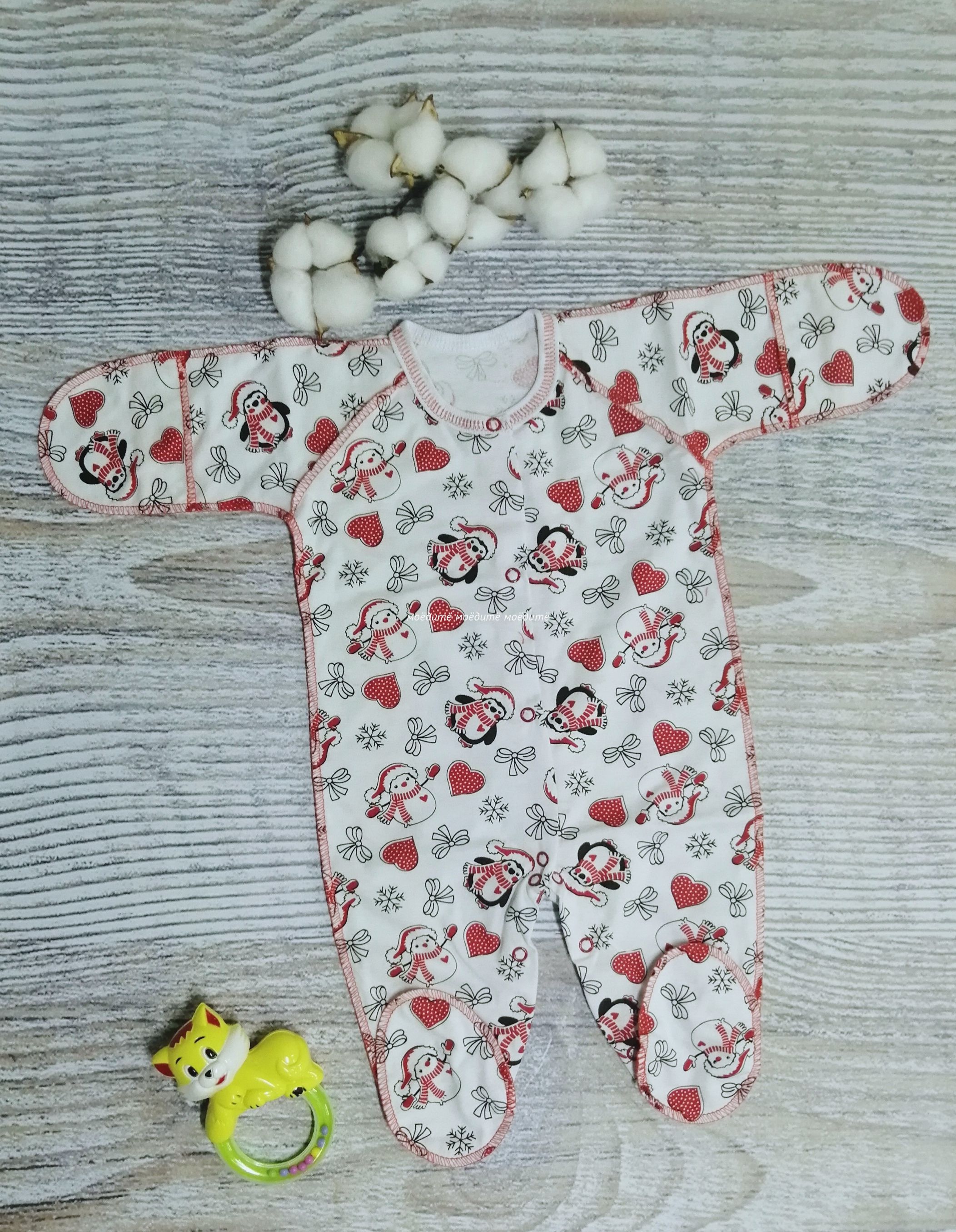 Комбинезон с закрытыми ножками, с рукавчиками-трансформерами, с кнопочками спереди и между ножек, со швами наружу.