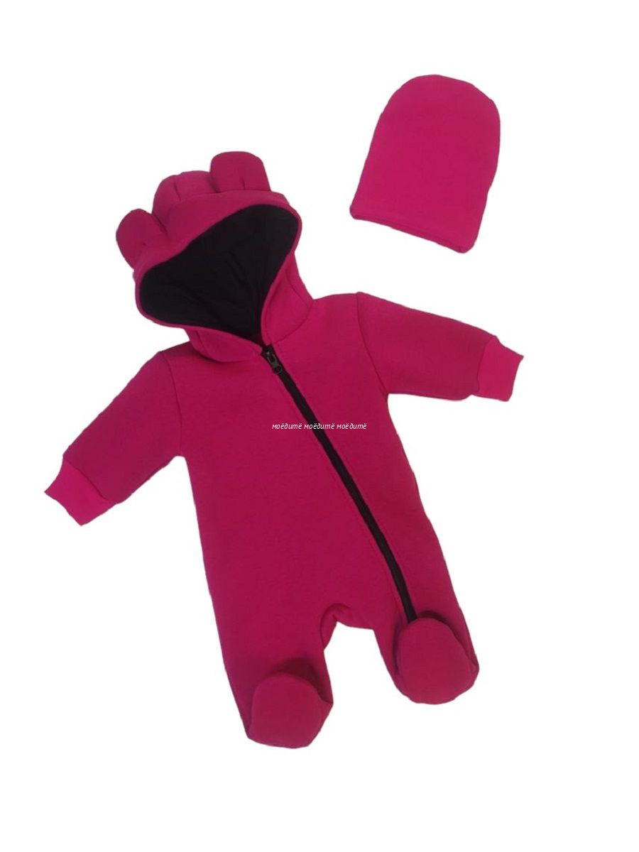 "МоёДитё" комбинезон выполнен из футера с начёсом. Комбинезон с капюшоном на подкладке и декорирован сверху ушками, с закрытыми ножками, рукава на манжетах, спереди косая молния до конца одной ножки. Шапочка из кашкорсе можно одевать как с отворотом, так и без. Очень хорошо тянется.