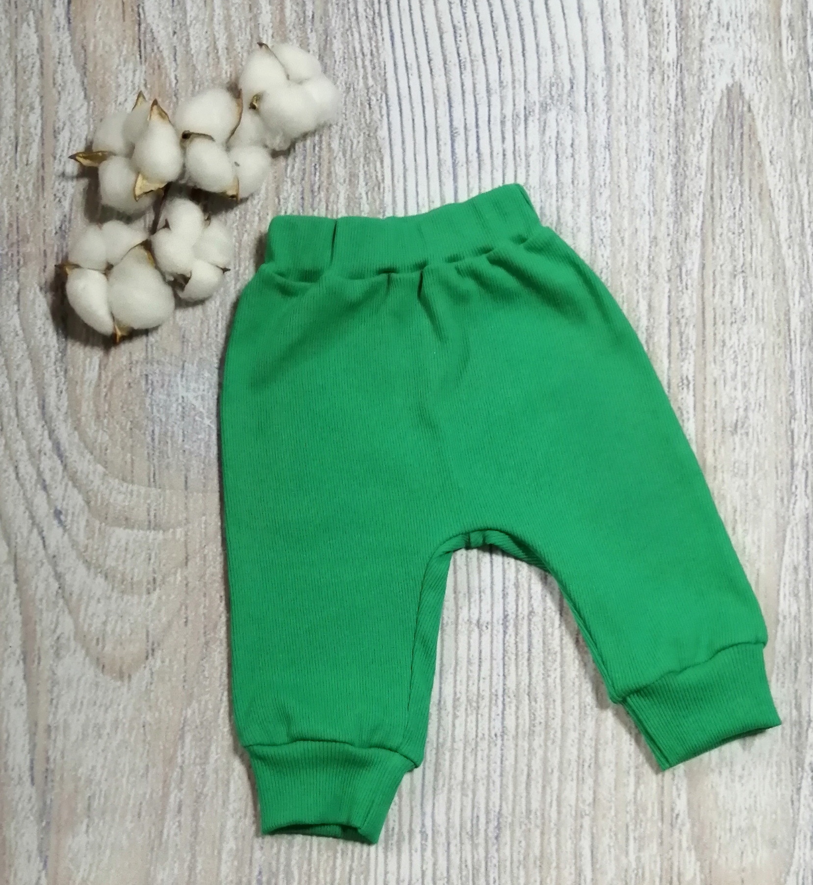 1. Штанишек на широком поясе с резинкой, снизу на манжетах.